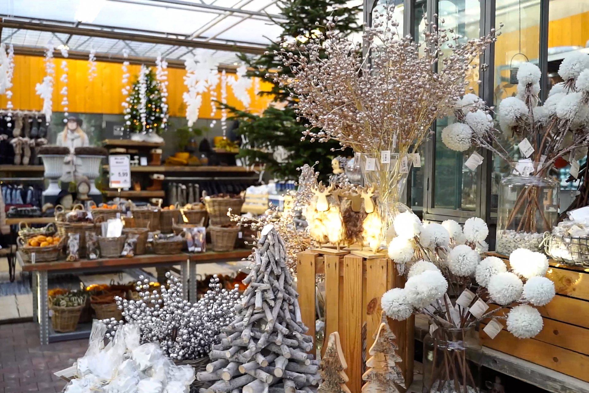 Een rij geurende dennenbomen verwelkomt de bezoekers die de weken voor Kerst binnen lopen bij Tuincentrum Hardenberg. De meeste bezoekers slaan af naar de kerstbomenverkoop of lopen in één streep door naar de kerstafdeling vol glimmende ballen en winterse decoratie.